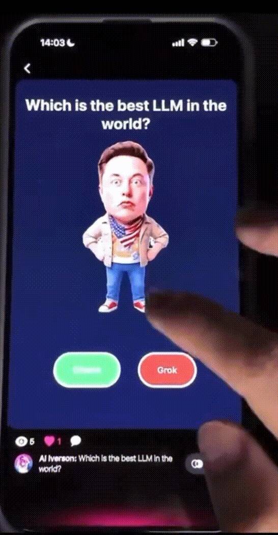 是这样的,有个国外老哥在X上发了条贴子,视频里,一个马斯克的卡通形象出现在手机屏幕里,头上顶着一个问题“Which is the best LLM in the world?”(谁是世界上最好的大语言模型?)