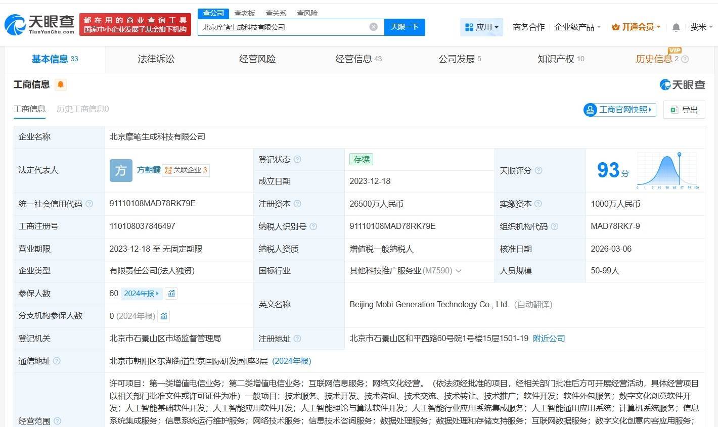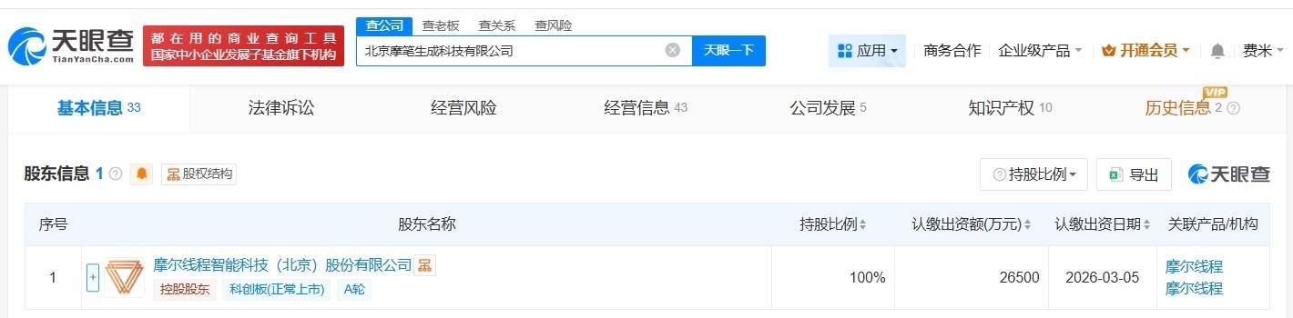 配资在线炒股查询 摩尔线程旗下摩笔生成科技公司增资至2.65亿