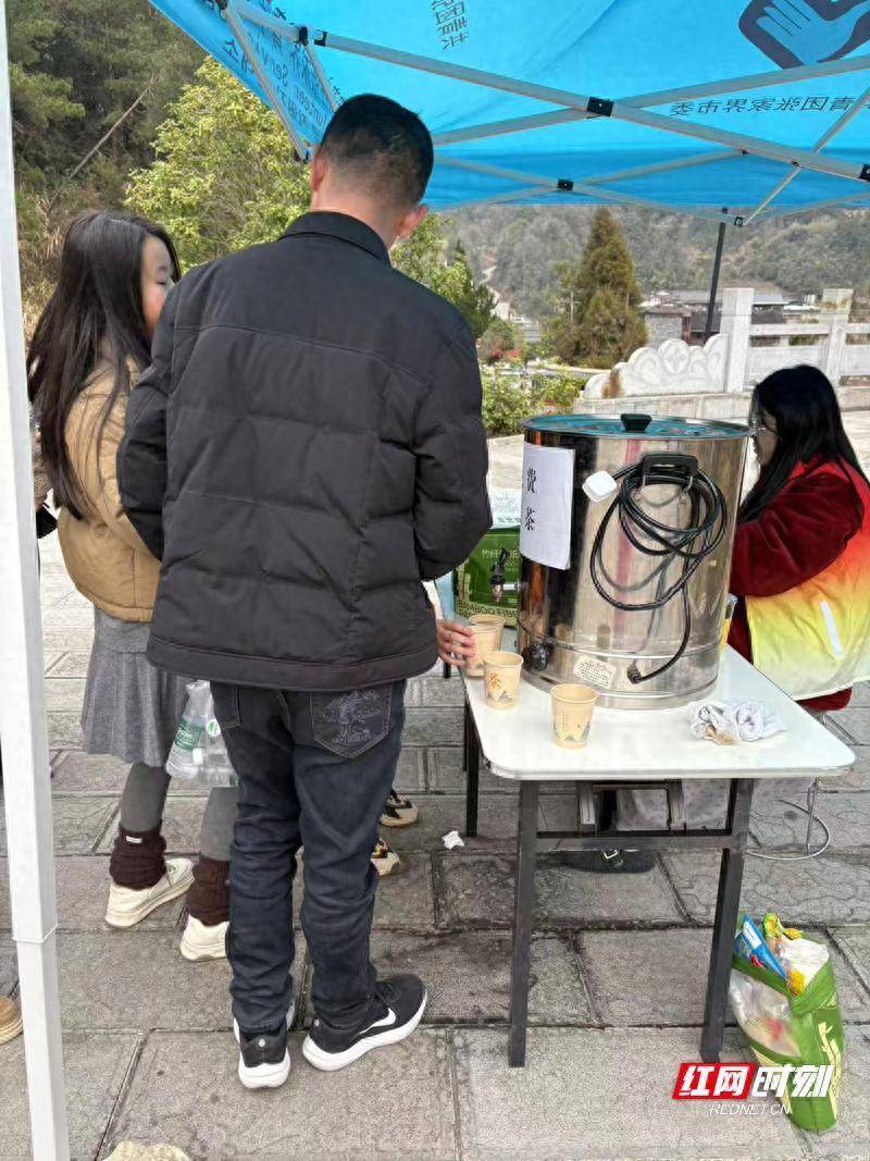 为让远道而来的游客玩得舒心、暖身更暖心,门票站工作人员提前精心熬制姜茶,不间断保温供应。在入园口、休息区等点位,志愿者与工作人员主动上前,将一杯杯热姜茶递到游客手中,搭配一句句真诚的新年祝福,让暖意与年味一同直达心底。小小的一杯姜茶,收获了游客们的连连点赞。很多游客表示“细节最打动人,一杯姜茶让旅途更有温度,这个春节来得太值了!”还有游客表示,张家界不仅风景绝美,服务更是贴心到位,让人倍感亲切。
