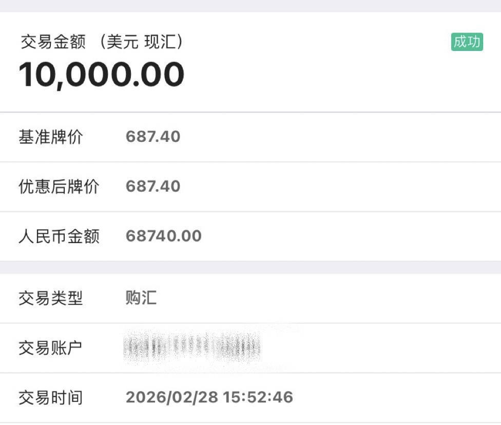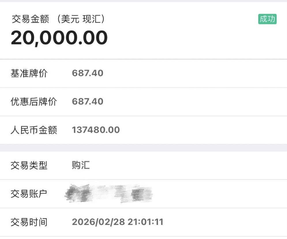 郑女士回忆,当时刷新闻看到央行为了抑制人民币汇率过快升值,将远期售汇业务的外汇风险准备金率从20%下调至0。“我打开手机看了下价格还不错,就以6.874的价格分两次购汇,账面已实现小幅汇兑收益。”