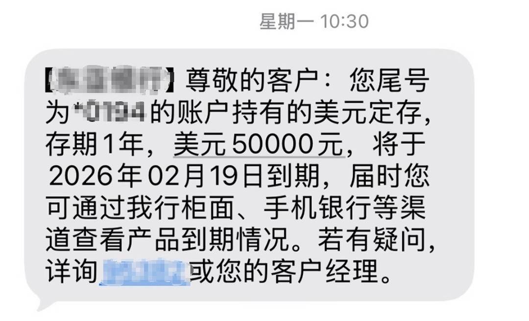“1月初,在人民币对美元汇率破7时,存了3000美元的1年期定期存款。”小雷分享了2026年的第一笔存单,年利率3.45%。