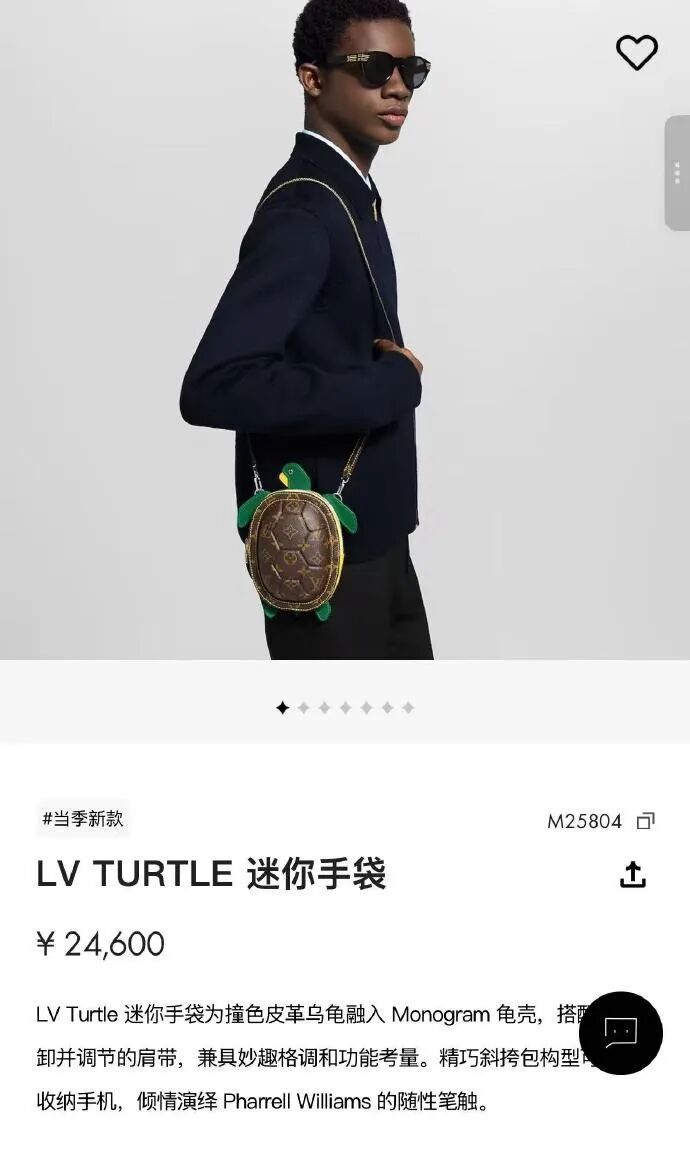 除了这款“北京烤鸭包”,LV官网曾上架的一款外形类似乌龟的迷你手袋也备受诟病。官方称这款手袋为撞色皮革,融入Monogram龟壳,斜挎包构型可轻松收纳手机,售价2.46万元。